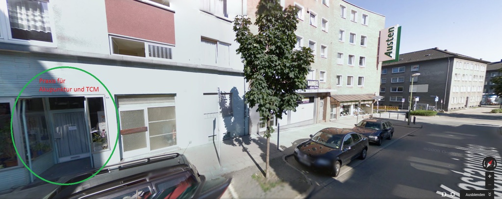 gerade. Sie laufen an der Rückseite des Unperfekthauses und ein indisches Restaurant vorbei. Unsere Praxis befindet sich direkt neben dem indischen Restaurant im Paterre.